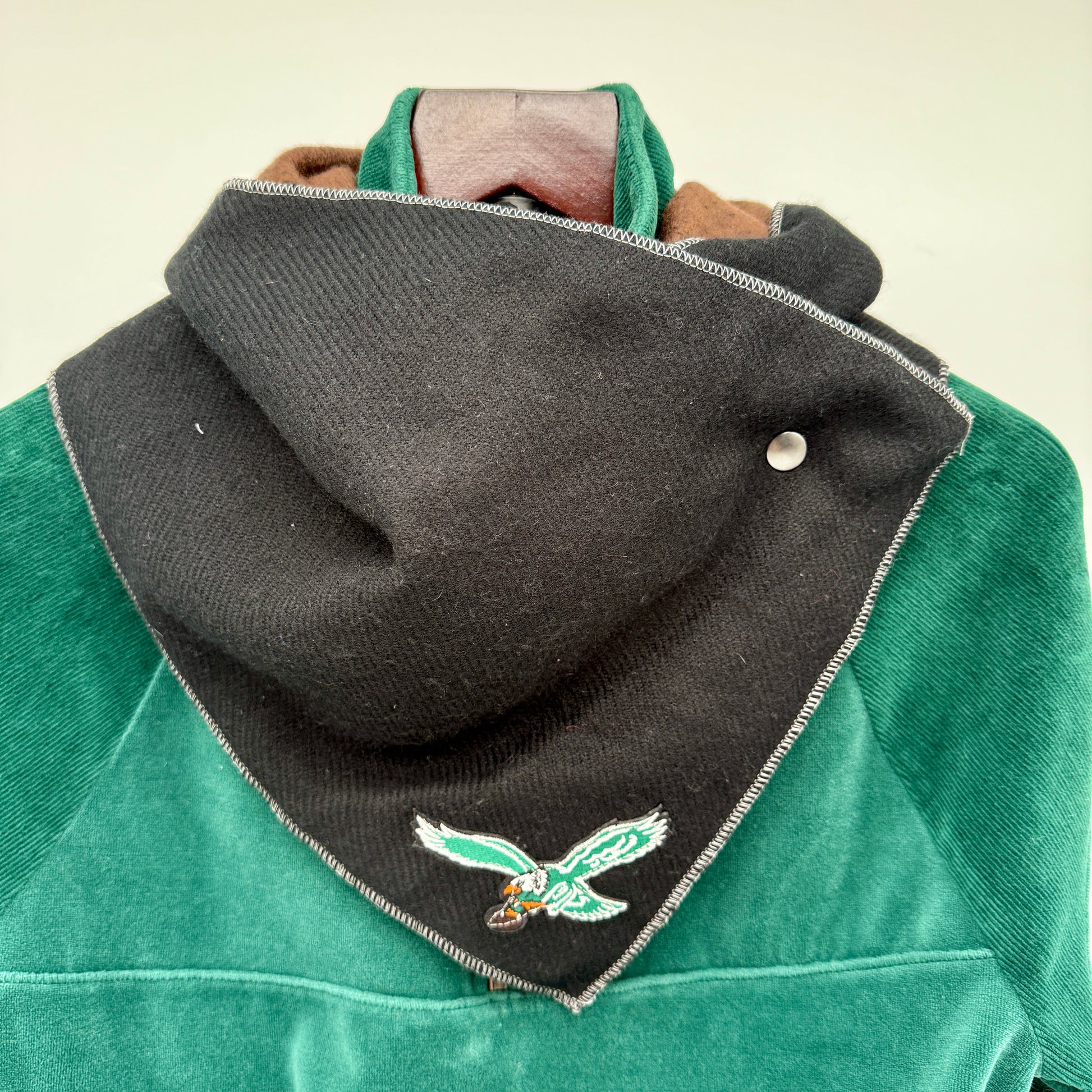 Show your Philly pride while staying cozy and eco-conscious! Our handmade upcycled neck warmers are part of a special limited edition drop featuring stylish nods to the Eagles.