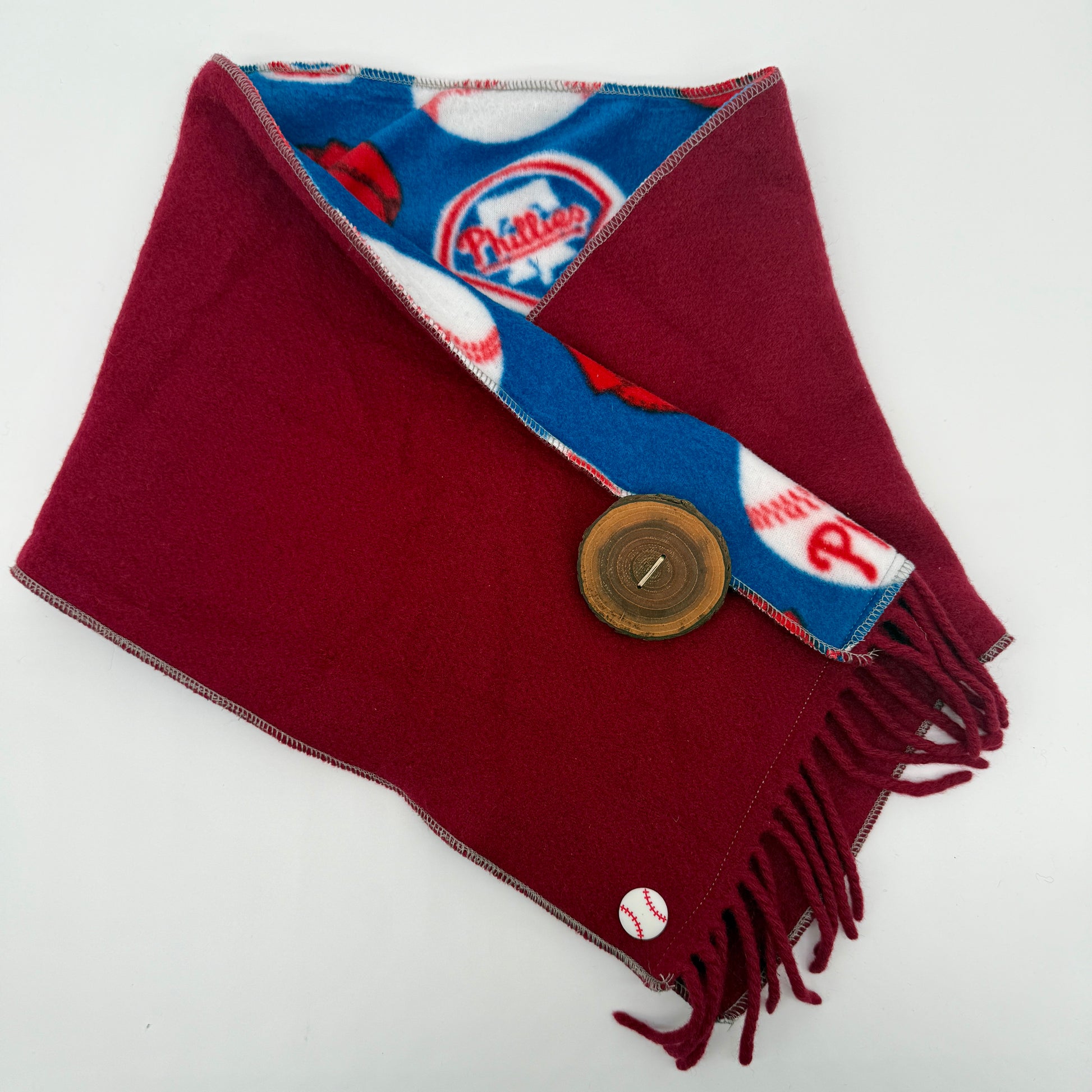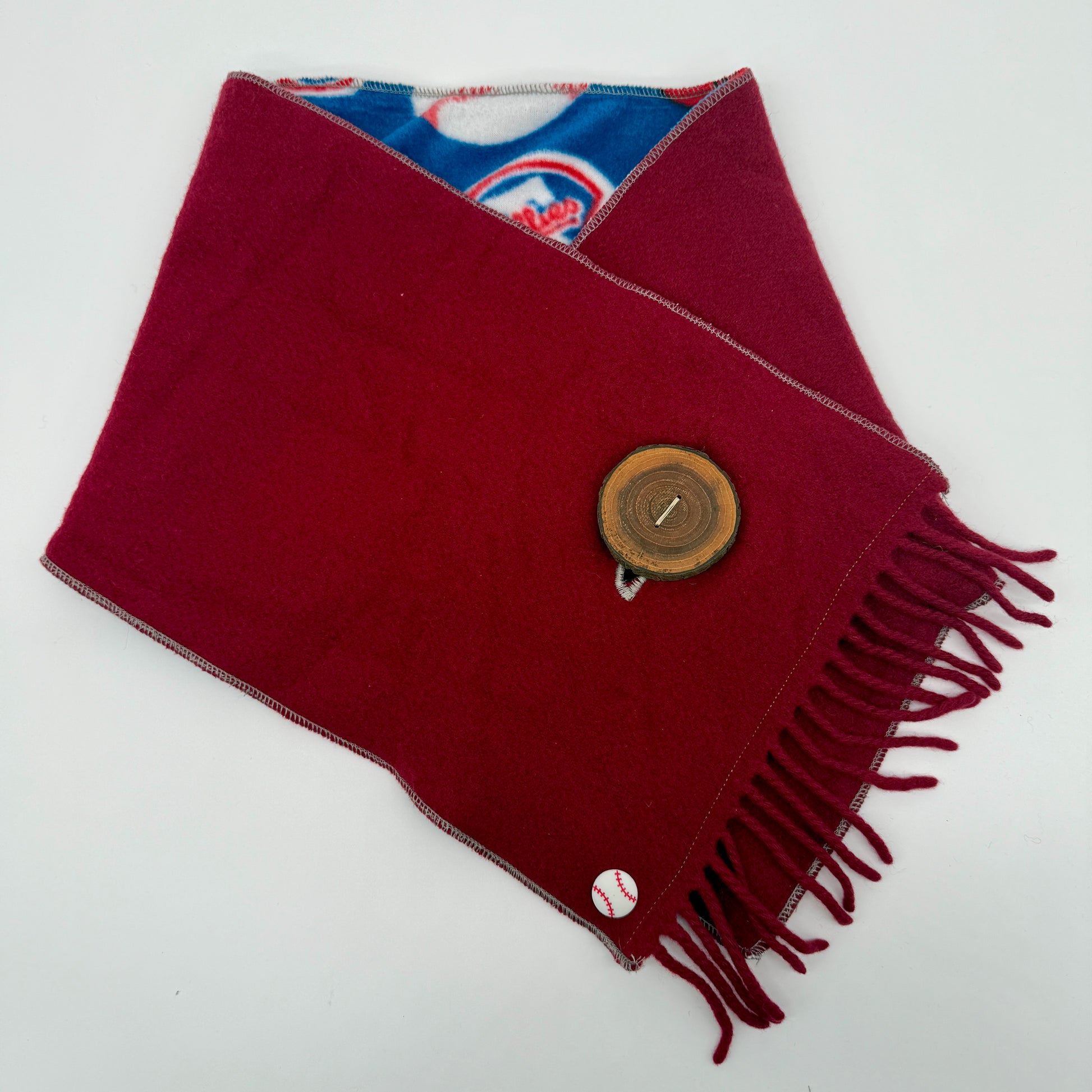 Show your Philly pride while staying cozy and eco-conscious! Our handmade upcycled neck warmers are part of a special limited edition drop featuring stylish nods to the Phillies.