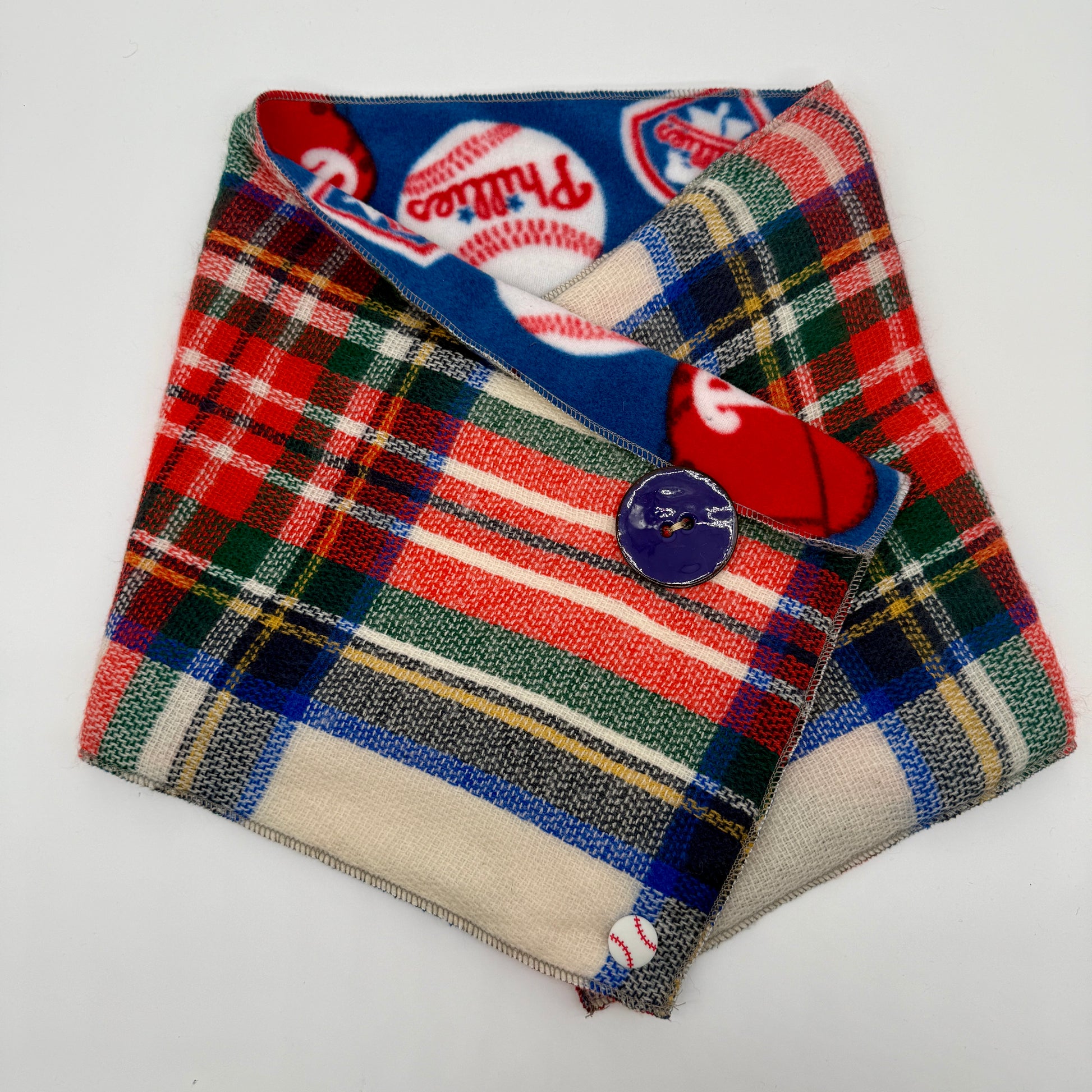 Show your Philly pride while staying cozy and eco-conscious! Our handmade upcycled neck warmers are part of a special limited edition drop featuring stylish nods to the Phillies.