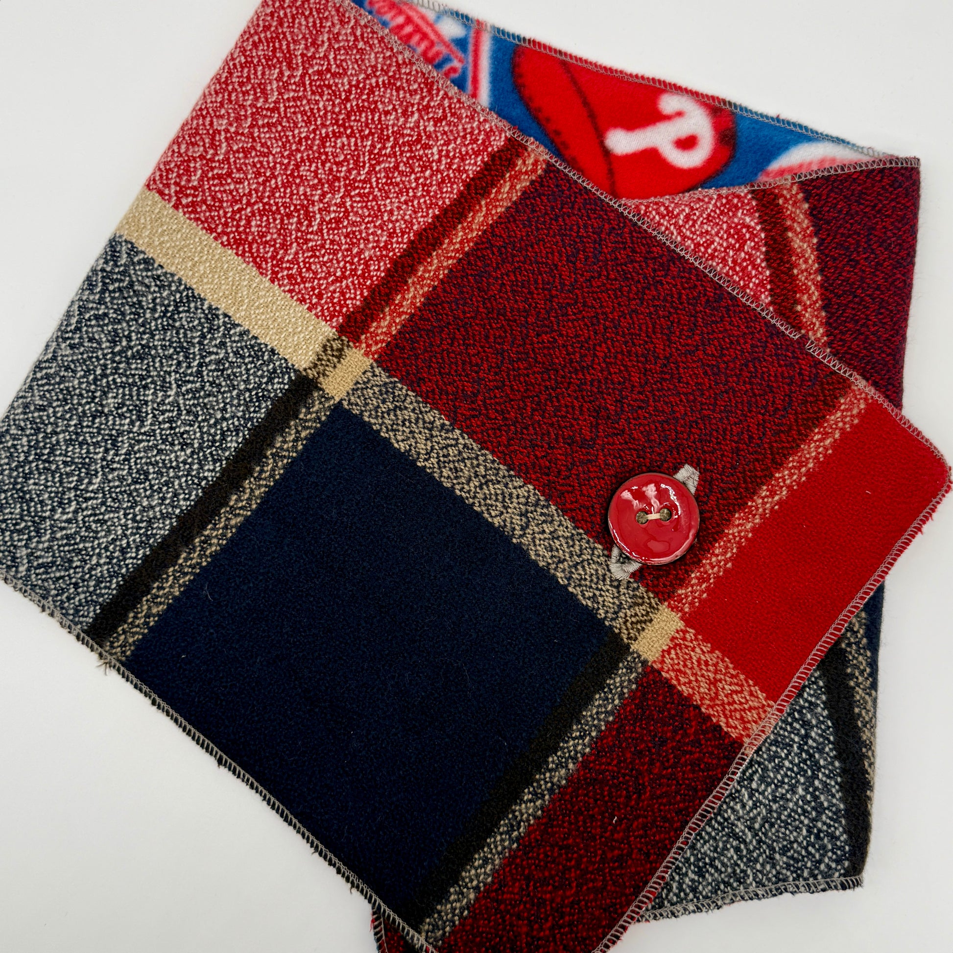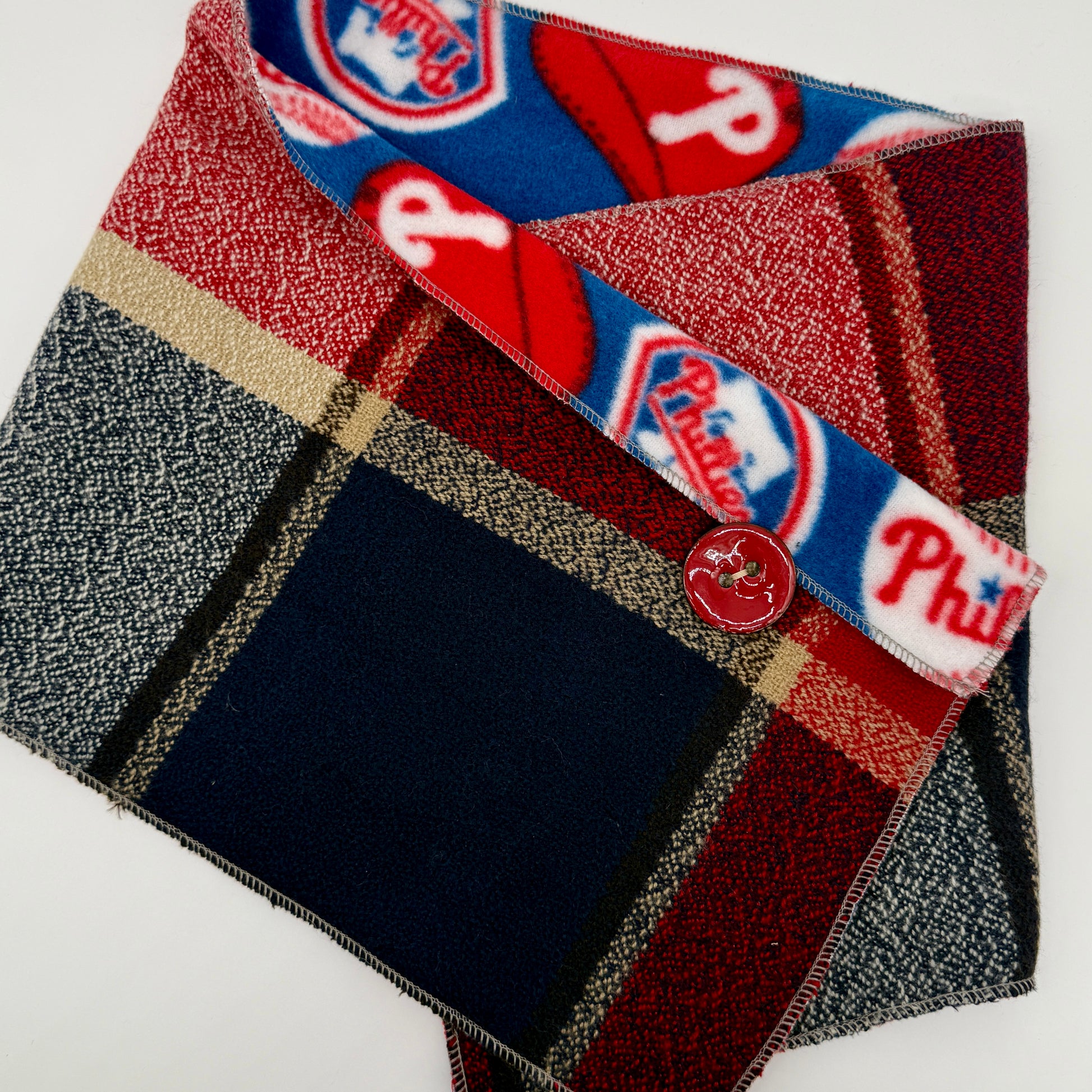 Show your Philly pride while staying cozy and eco-conscious! Our handmade upcycled neck warmers are part of a special limited edition drop featuring stylish nods to the Phillies.