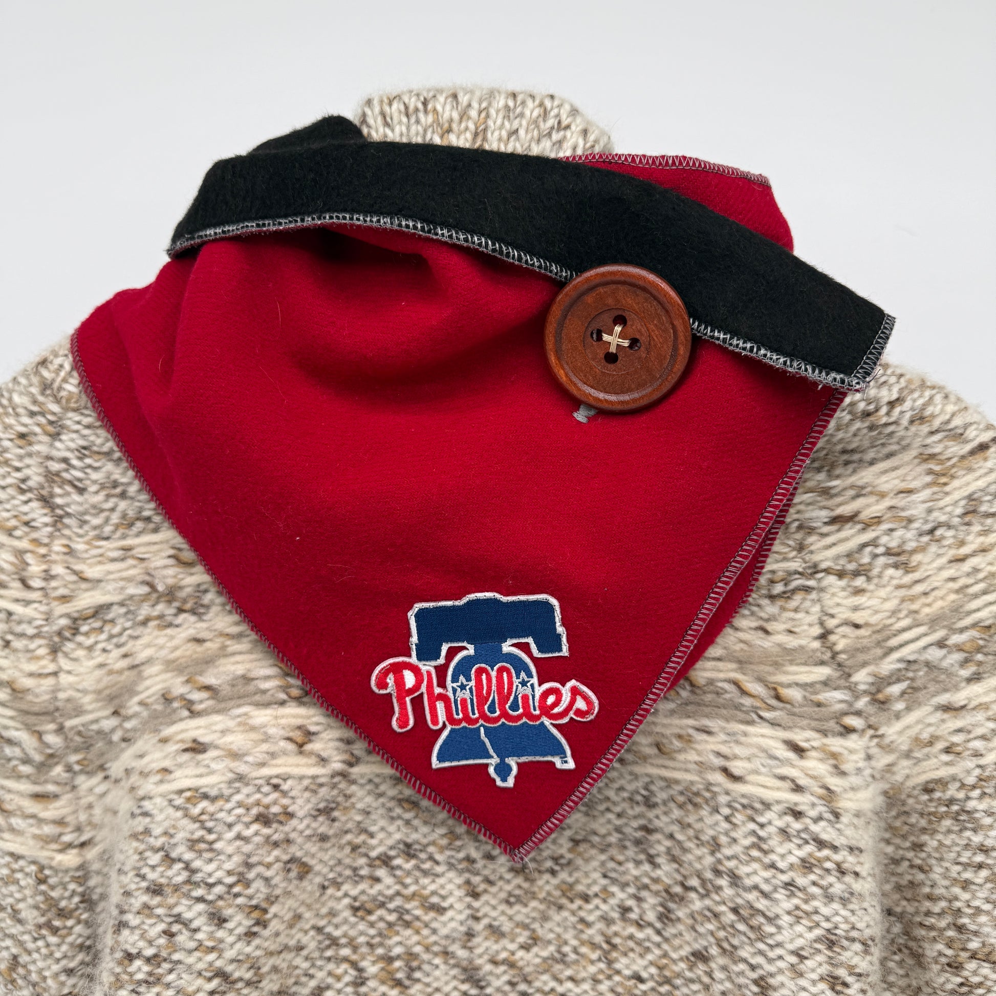 Show your Philly pride while staying cozy and eco-conscious! Our handmade upcycled neck warmers are part of a special limited edition drop featuring stylish nods to the Phillies.