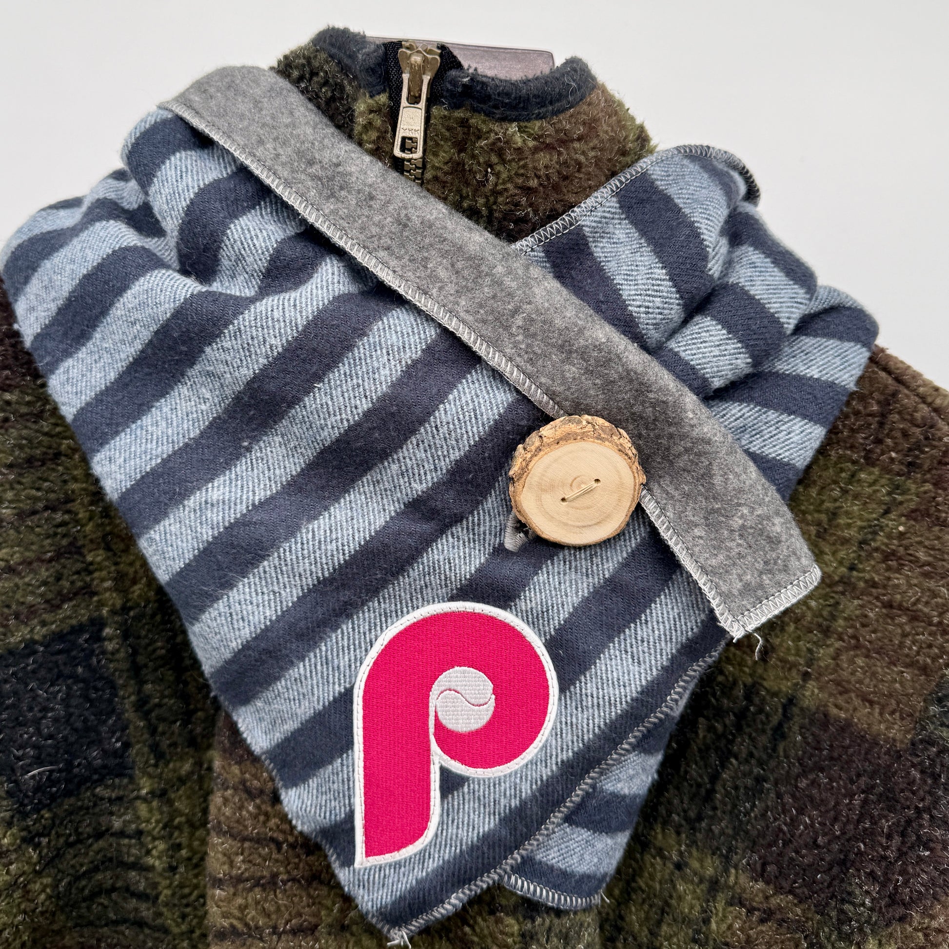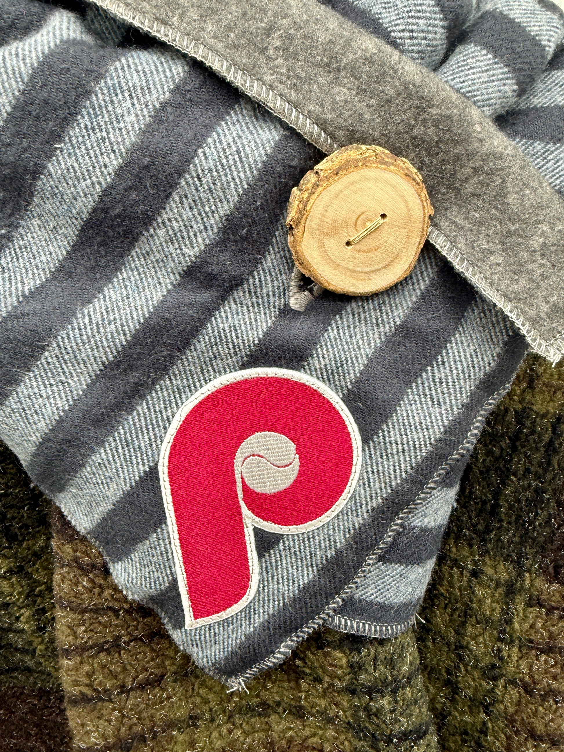 Show your Philly pride while staying cozy and eco-conscious! Our handmade upcycled neck warmers are part of a special limited edition drop featuring stylish nods to the Phillies.